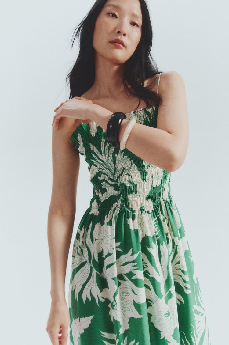 SMOCKED-BODICE STRAPPY DRESS