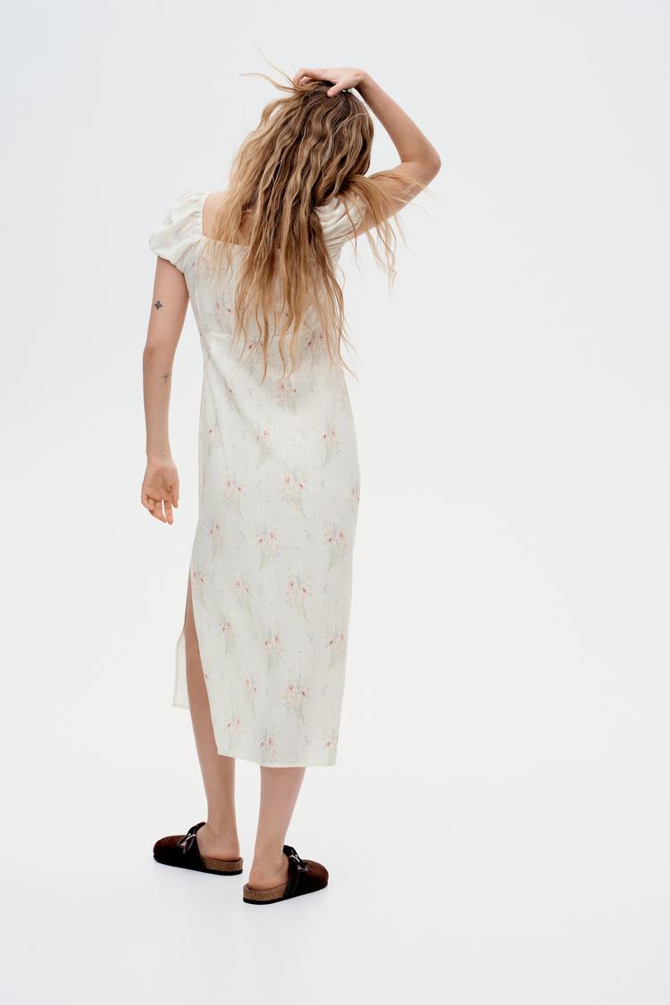 puffed sleeve midi dress