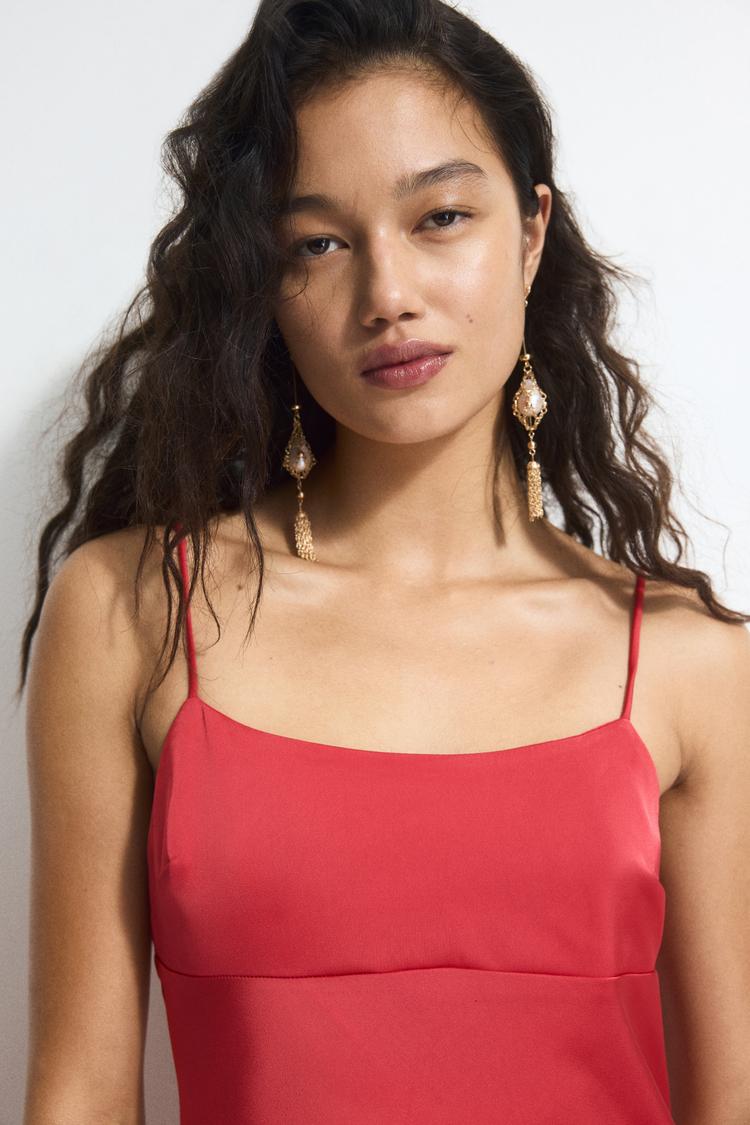 red satin slip dress