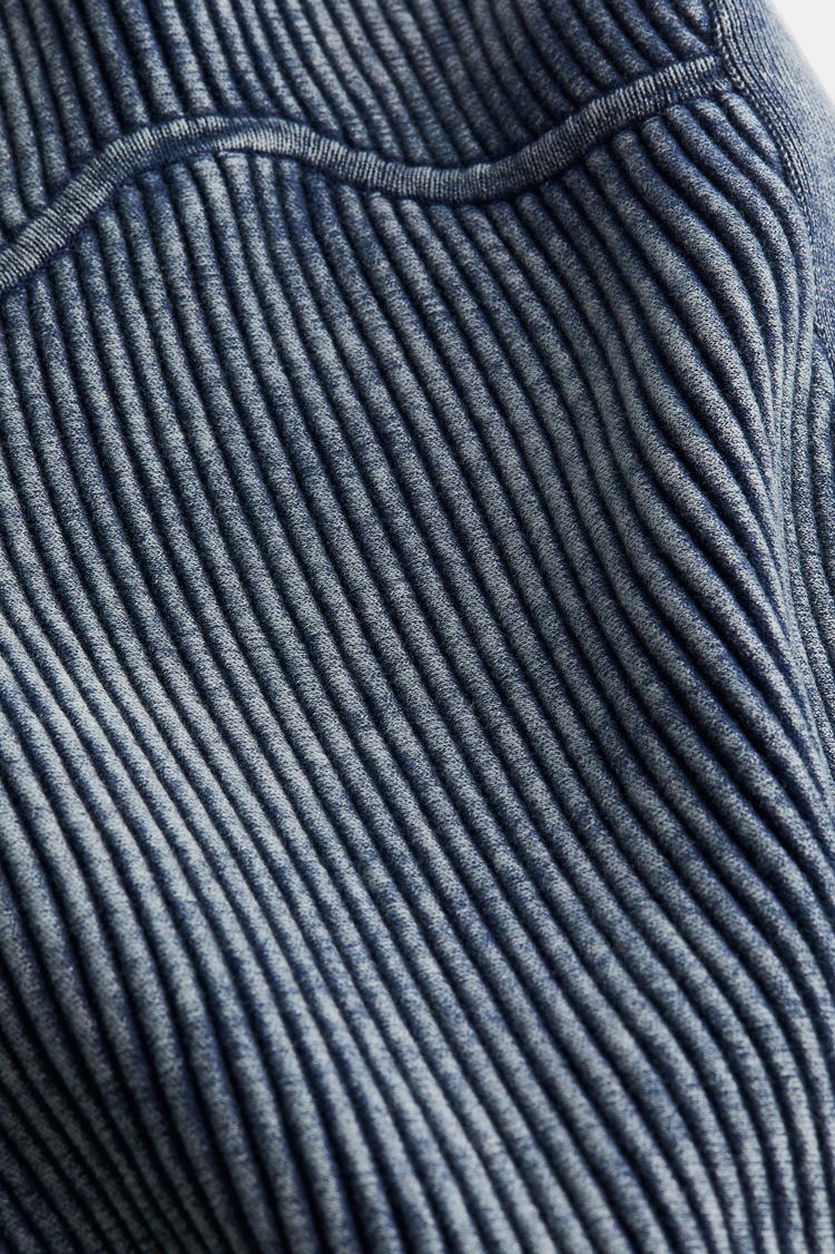 Raised rib knit texture in a washed dark blue hue defines this fitted mini sheath dress, designed with a round, low-cut neckline and sleeveless styling for warm weather. Flat-knit panels at the sides and a narrow-ribbed trim below the bust enhance the silhouette with subtle shaping. Crafted from breathable cotton, this minimalist and casual chic dress is perfect for spring and summer days, suited for casual outings, brunches, or date nights. Its clean hem and slip-on design complete a comfortable yet figure-flattering look.