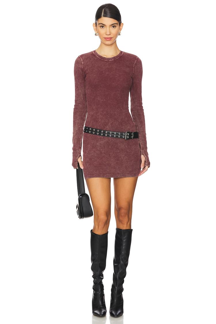 Soft ribbed jersey fabric shapes a fitted mini sheath with a classic round neck and long sleeves, perfect for cooler autumn and winter days. The matte dusty rose hue offers a subtle warmth, while the clean hemline and slip-on styling keep the look effortlessly chic. Ideal for casual outings, brunch dates, or relaxed nights out, this dress pairs well with boots or flats for versatile everyday wear. Crafted with a cotton blend for comfort and stretch, it delivers both style and ease in one minimalist package.