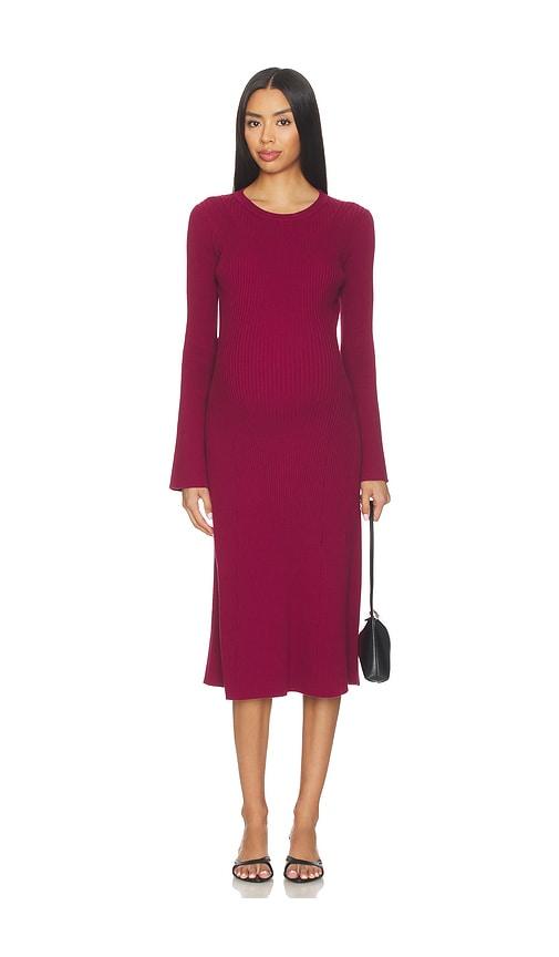 HATCH THE ODETTE RIBBED MIDI DRESS IN BURGUNDY.