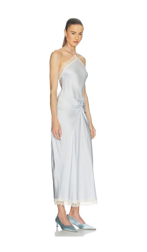 HELSA VISCOSE SATIN DRESS WITH LACE IN BABY BLUE.