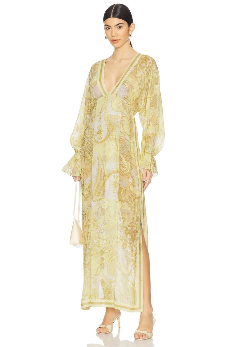 Lightweight chiffon and flowing viscose blend create an airy, elegant kaftan with a relaxed fit perfect for warm weather. This maxi-length piece features long balloon sleeves and a plunging V-neckline, accented by textured embroidery all over. A self-tie closure at the back adds a delicate touch, while side slits enhance movement and comfort. Ideal for beach days, casual brunches, or vacation wear, this bohemian-inspired kaftan blends romantic and elegant styles with breathable fabric for effortless summer sophistication.