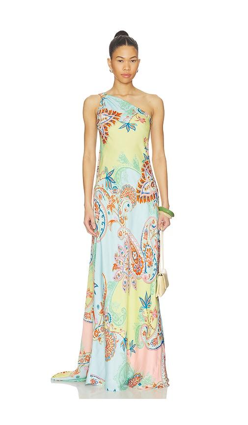 HEMANT AND NANDITA ONE SHOULDER SASH DRESS IN BABY BLUE.