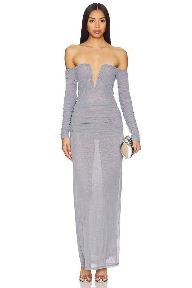 Soft, lightweight mesh fabric and a column silhouette create a sensual and sleek maxi dress perfect for spring and summer evenings. The slim fit with ruching all over enhances the figure, while the deep V-wired neckline and long sleeves add elegant allure. Sheer panels and a nude mesh neckline panel lend a modern, daring touch. Ideal for cocktail events, date nights, or sophisticated night outs, this dress offers effortless style and a pull-on slip-on design for easy wear.