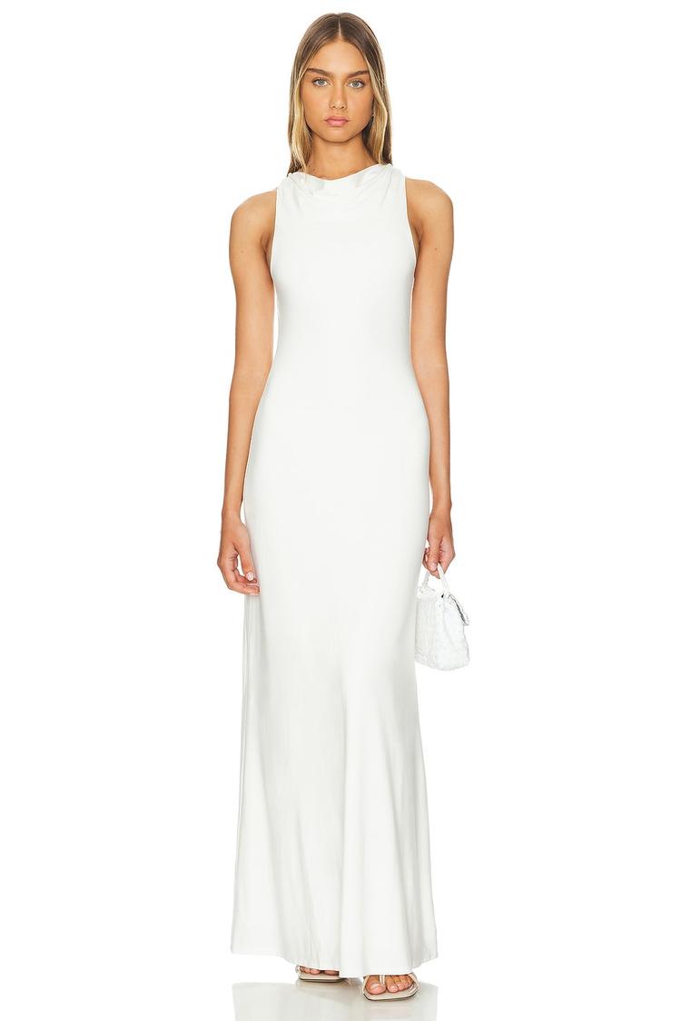 Clean lines and a sleek high neckline define this slim-fitting white column maxi dress, crafted from soft viscose jersey fabric. Its sleeveless, strapless styling and pull-on slip-on design ensure effortless wear and a flattering silhouette. The fully lined construction adds comfort and smoothness, making it an elegant choice for cocktail parties, date nights, or evening outings during spring through autumn. This minimalist and modern dress embodies chic sophistication with a simple, polished hemline, perfect for refined yet understated occasions.