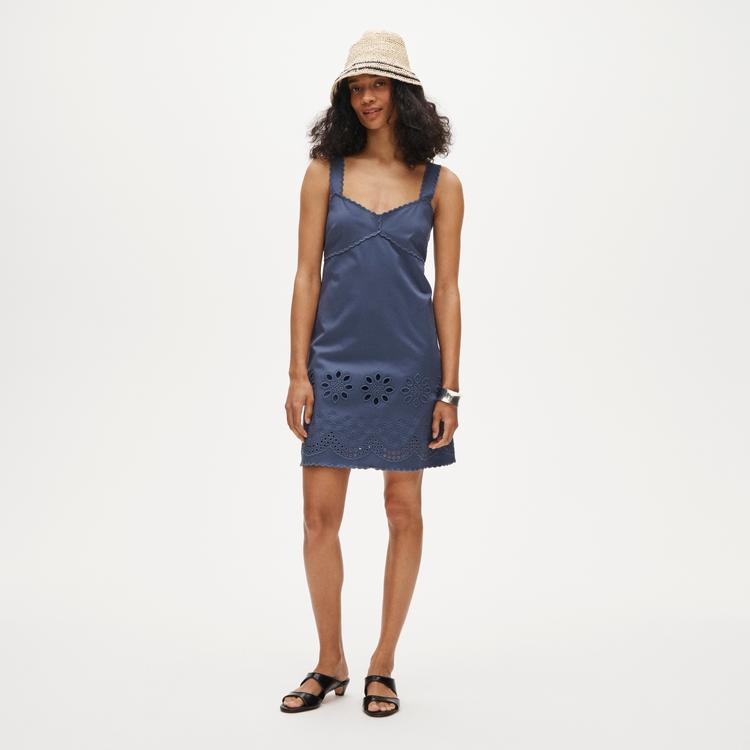 SCALLOP-TRIM MINI DRESS IN WASHED TWILL