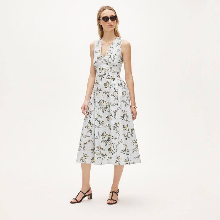 V-NECK DRESS IN LOTUS-PRINT COTTON POPLIN