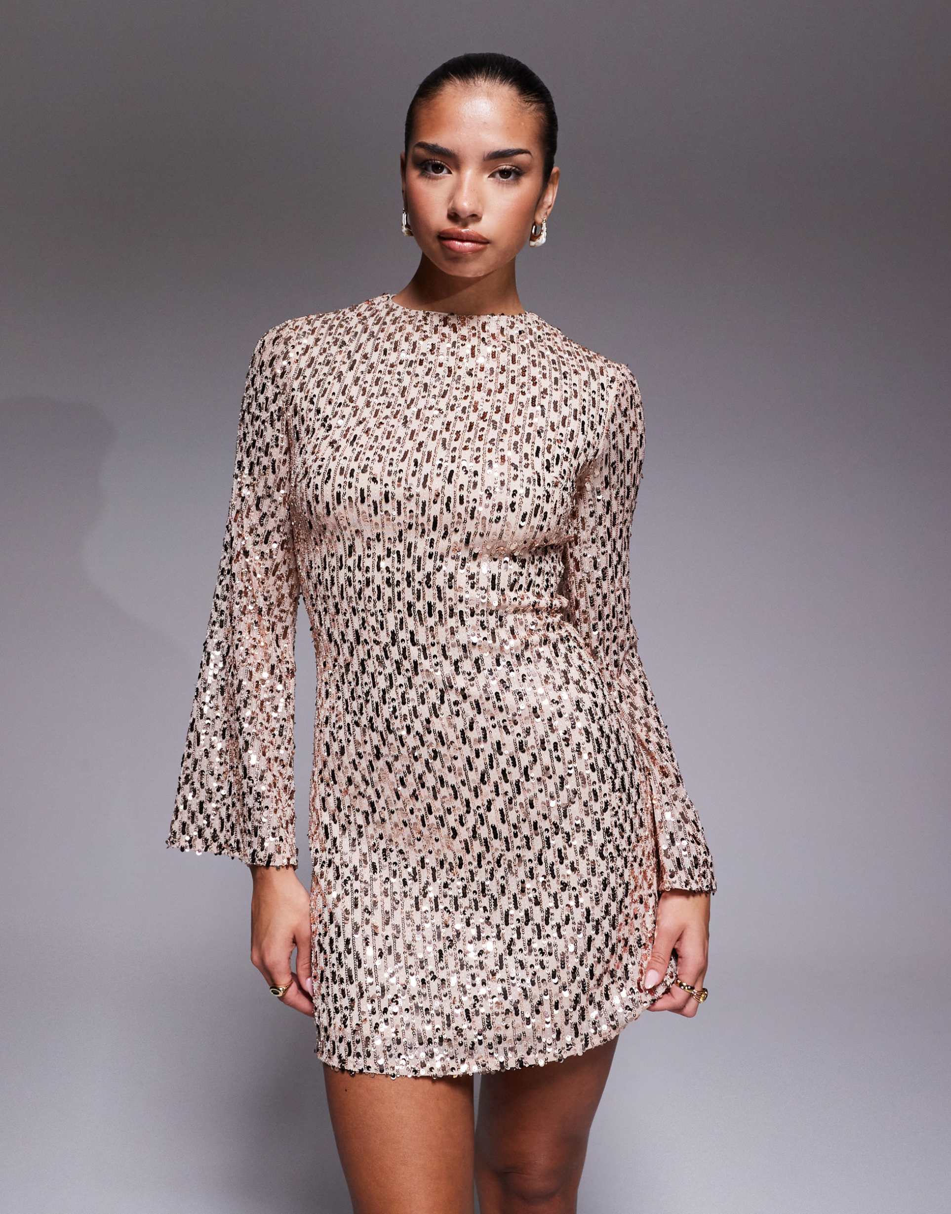 JADED ROSE FLUTED SLEEVE SEQUIN MINI DRESS IN CREAM