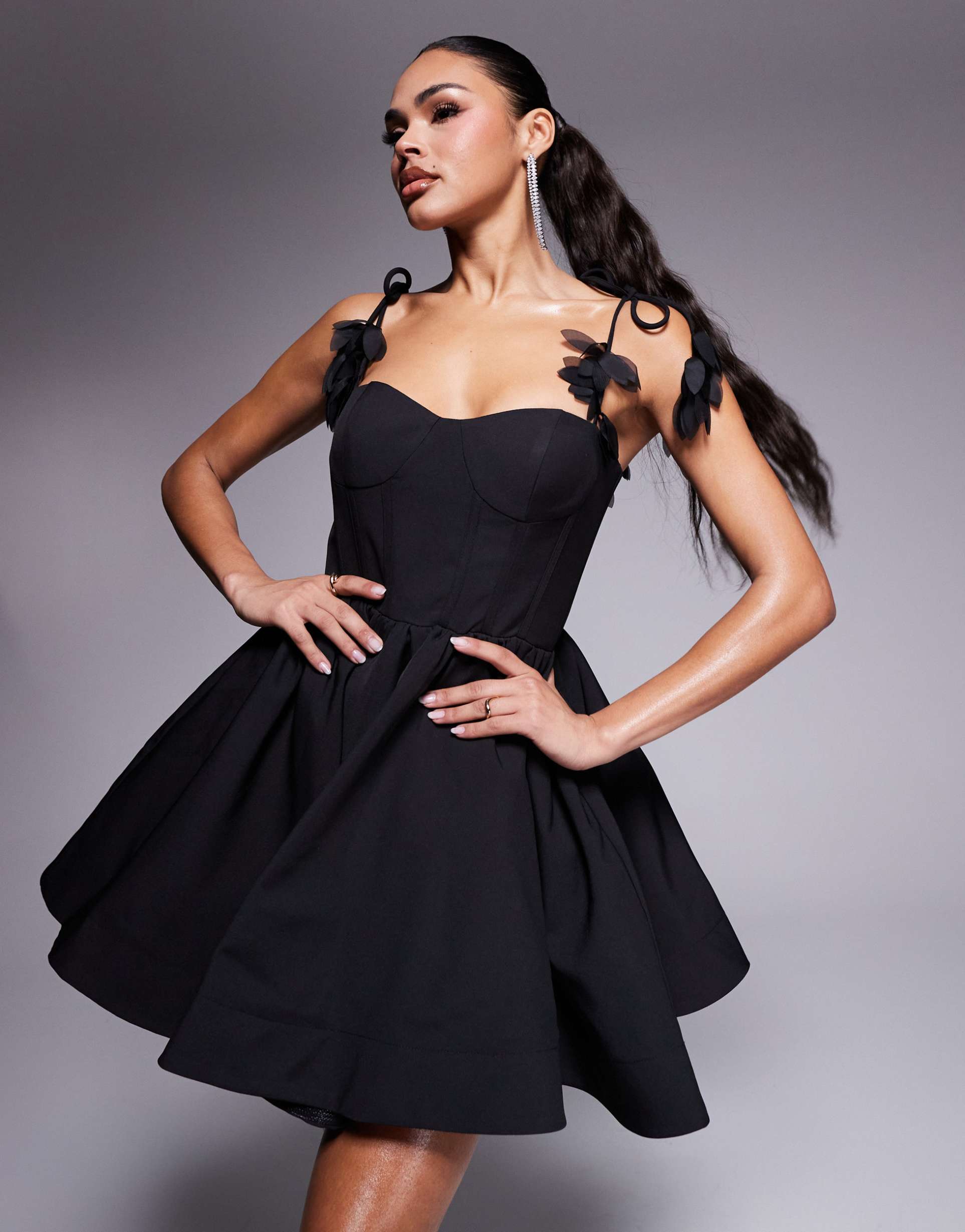 JARLO STRUCTURED A-LINE MINI DRESS WITH 3D STRAP DETAIL IN BLACK