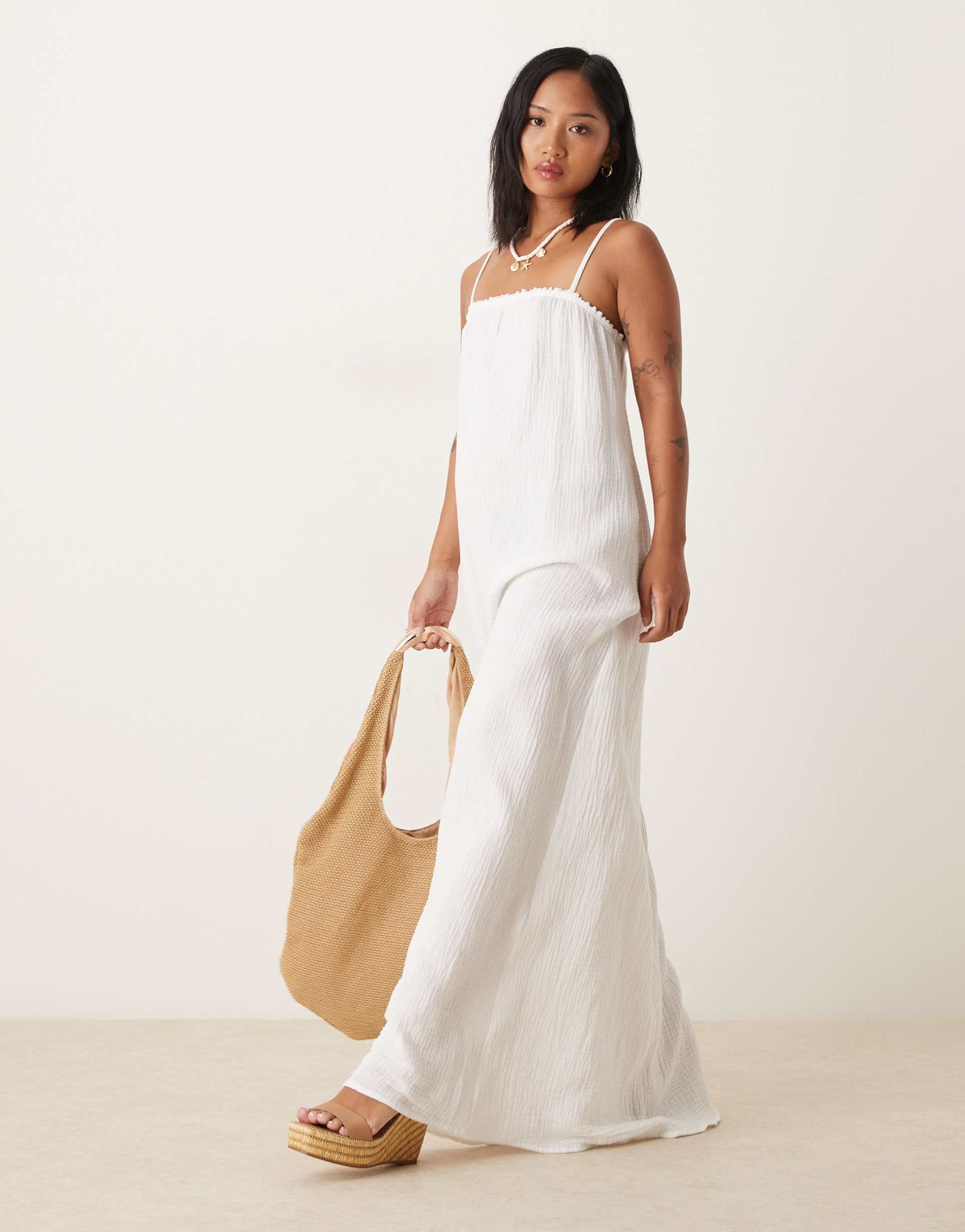 Light and breezy, this off-white maxi dress features a textured cotton fabric that enhances its casual charm. The square neckline and adjustable straps offer a comfortable fit, perfect for warm spring and summer days. Its sleeveless design and flowing maxi length provide effortless style for everyday wear, beach vacations, or relaxed brunch outings. The regular fit and petite sizing cater to a flattering silhouette, making it an easy-to-wear staple for a minimalist and casual chic wardrobe.