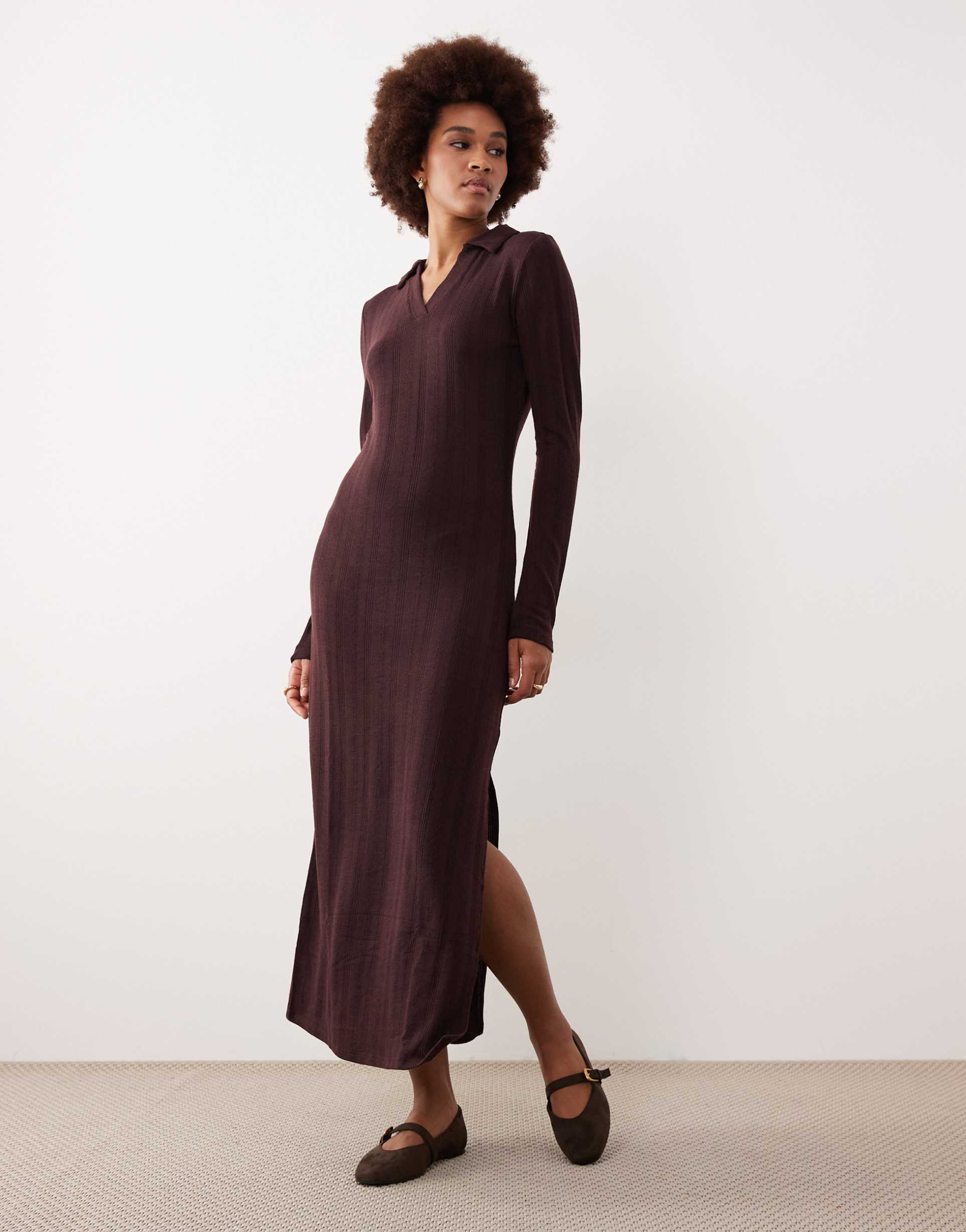 JDY TALL KNIT POLO MAXI DRESS IN CHOCOLATE BROWN