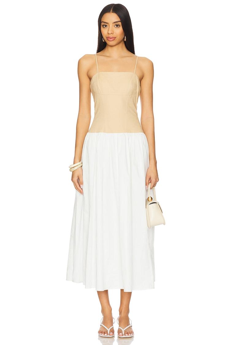 beige white combo dress