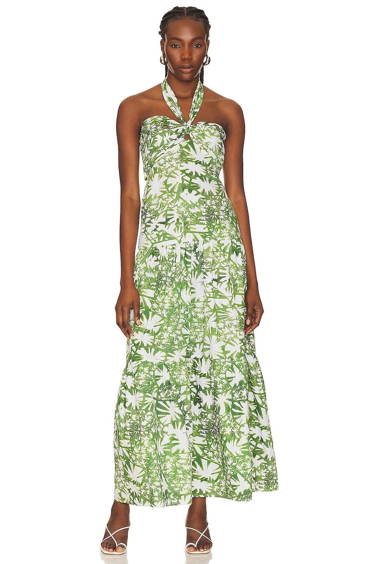 Sun-drenched days call for this flowy A-Line maxi dress featuring a vibrant all-over floral print in matte green and white. The halter neck with a twist detail at the bust and a subtle keyhole cut-out adds a playful yet elegant touch. Designed in breathable 100% cotton, it offers casual chic comfort perfect for spring and summer occasions like brunch, beach vacations, or date nights. The tie-back closure enhances its relaxed fit and bohemian vibe, making it a versatile piece for effortless warm-weather style.