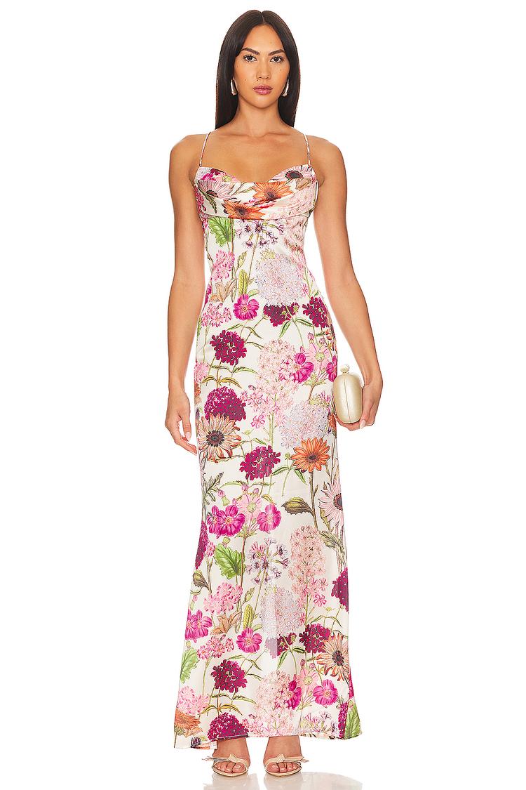 Sunlit evenings and special occasions come alive in this elegant column silhouette gown, featuring a flattering sweetheart neckline and slender spaghetti straps that criss-cross at the back for a sophisticated touch. Crafted from smooth satin polyester, the maxi-length dress showcases a soft off-white base adorned with a vibrant all-over floral pattern in dusty rose, peach, olive, and brown hues. The fitted design and hidden side zipper closure enhance its polished profile, making it an ideal choice for cocktail parties, formal events, and romantic date nights during spring and summer.