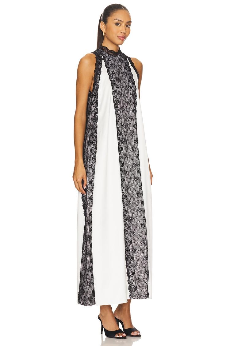 Lightweight satin fabric paired with elegant black lace paneling creates a striking column silhouette in this sleeveless maxi dress. The high neckline and keyhole back button closure add refined sophistication, while the flowy fit ensures comfortable movement. Perfect for formal occasions, cocktail parties, or wedding guest attire, this dress combines classic style with modern elegance for versatile seasonal wear. Its clean hemline and subtle lace trim detail emphasize a chic and polished look.