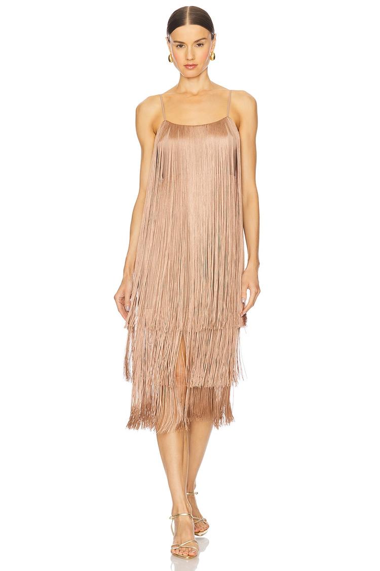 metallic fringe midi dress