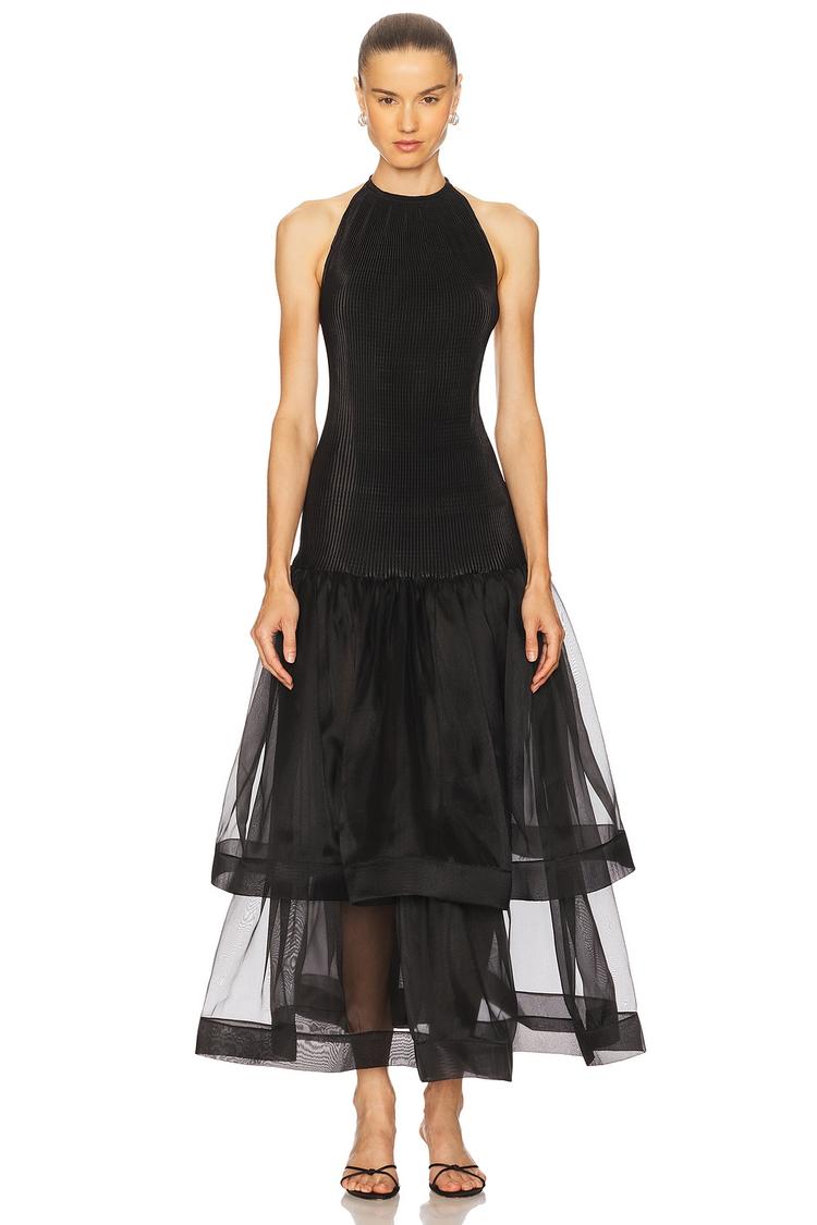 Soft organza tiers and delicate ruffle details define this elegant A-Line midi dress, perfect for cocktail nights and romantic dates. The fitted smocked bodice contrasts beautifully with the flowing layered skirt, while a halter neckline and open back add alluring sophistication. Crafted from lightweight polyester, this sleeveless dress offers both comfort and style for spring through autumn evenings.
