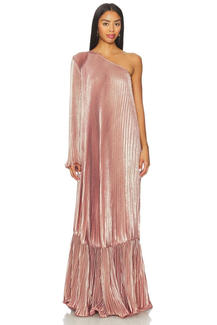 Shimmering dusty rose pleats cascade elegantly in this asymmetric column gown, crafted from heavyweight satin polyester. The long sleeves and maxi length create a flowing silhouette that exudes timeless sophistication. A hidden side zipper ensures a smooth fit while the ruffled hem adds subtle movement to the design. Ideal for formal occasions, cocktail parties, and galas, this gown blends classic elegance with modern charm for an unforgettable statement.