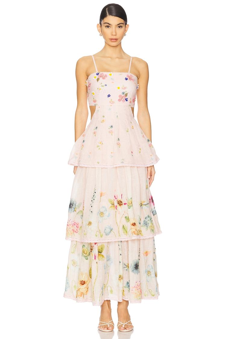 Soft cotton poplin and delicate rhinestone floral embellishments bring an elegant, romantic vibe to this fitted A-Line maxi dress. Featuring a straight neckline, adjustable shoulder straps, and a hidden back zipper with a lace-up tie-back closure, it offers a flattering silhouette with tiered skirt details that enhance its garden gala charm. Perfect for formal occasions, cocktail parties, wedding guest events, and bridal showers during spring and summer, this dress combines comfort and sophistication in one stunning look.