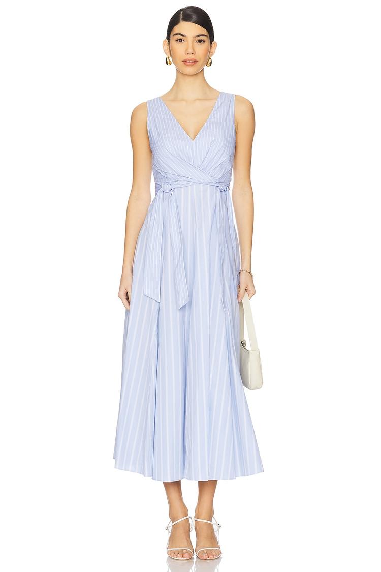 blue striped midi dress