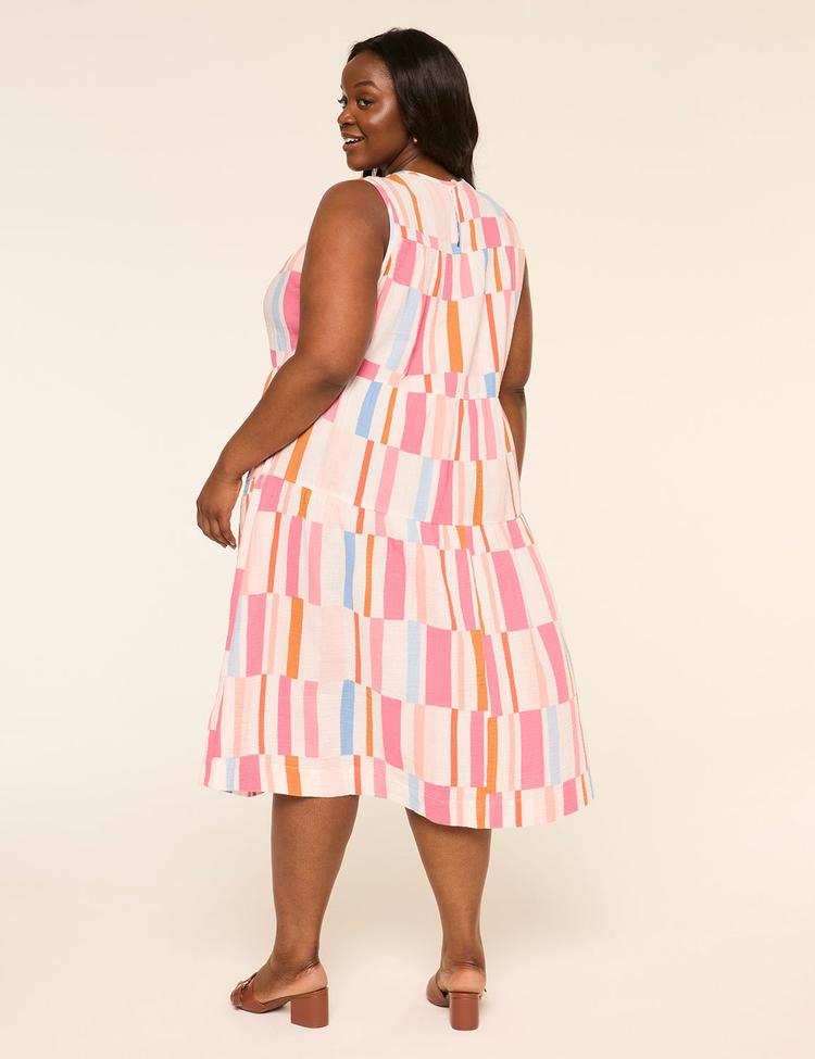 EYELET-DETAIL TIERED MIDI DRESS