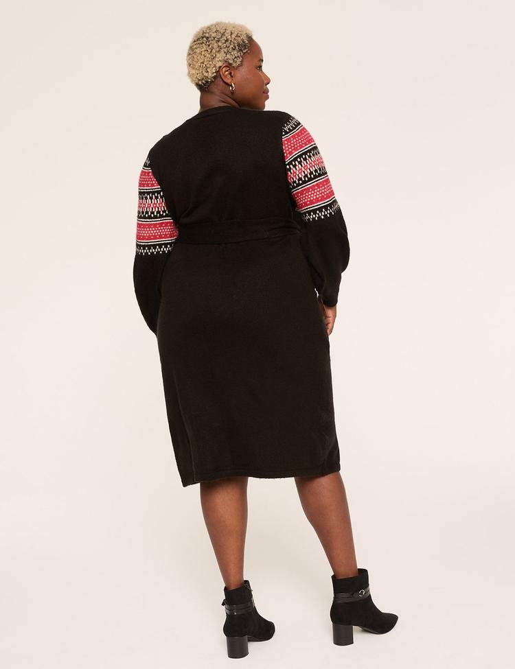 FAIR ISLE FAUX-WRAP SWEATER MIDI DRESS