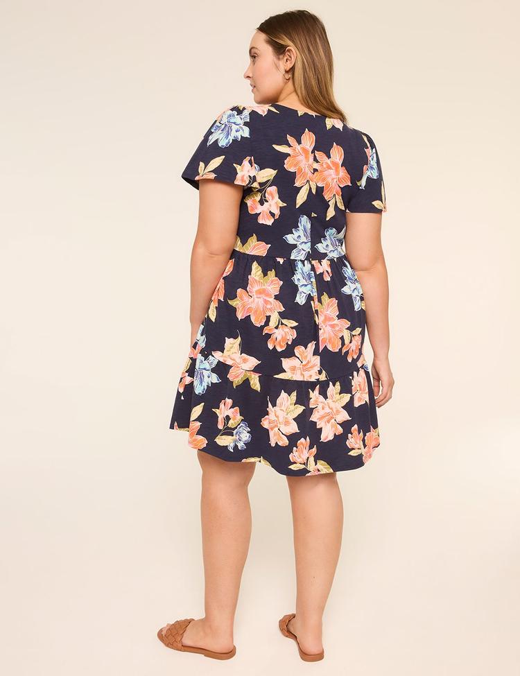 FLUTTER-SLEEVE TIERED SWING DRESS