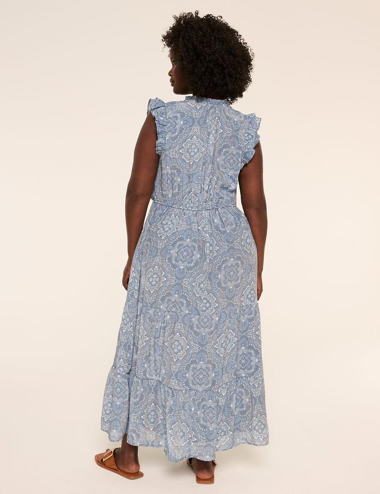 FLUTTER-SLEEVE V-NECK MAXI DRESS
