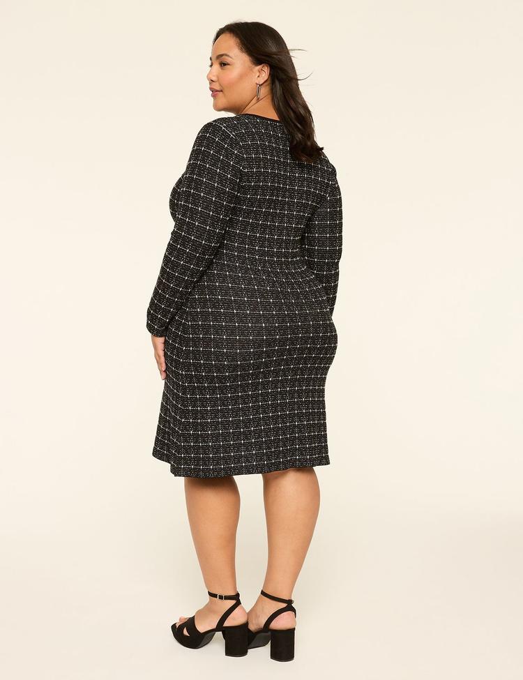 black windowpane knit dress