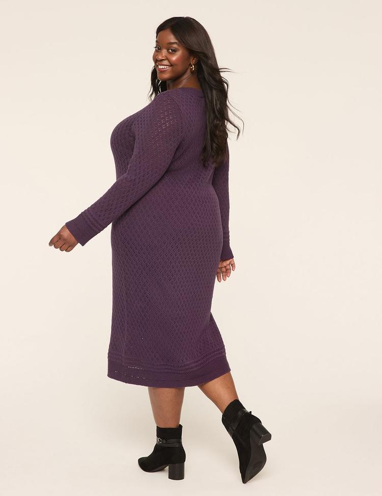 LONG-SLEEVE POINTELLE SWEATER MIDI DRESS
