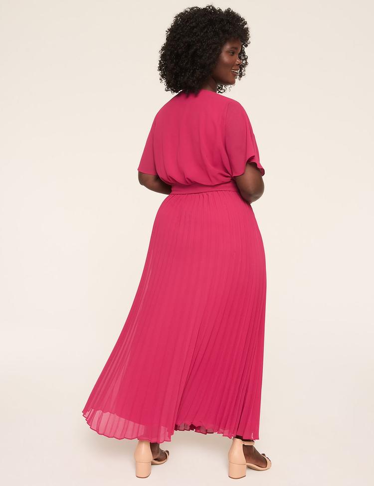 Available in Plus Size Twirlable pleats. Always-flattering faux-wrap silhouette. Soft, airy chiffon. Three reasons this event-ready dress is about to be your new fave. FIT: Faux-Wrap. Surplice neck with a self-tie for a customizable, universally flattering fit. Front Length: 55" Maxi length FEATURES: Surplice neck Short sleeves Matching self-tie belt with loops Pleated skirt Covered elastic waist Lined No closure, pull-over style FABRIC: Soft, breathable chiffon fabric Machine Wash 100% polyester body, 100% polyester lining Item Number #412887 Imported Plus Size Dress ". Plus Size Pleated-Skirt Faux-Wrap Maxi Dress, in Sangria, 20, Women's, Lane Bryant