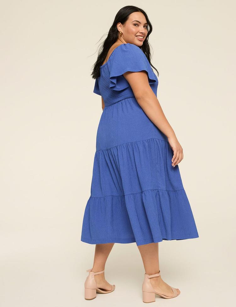 SHORT-SLEEVE SMOCKED MIDI DRESS