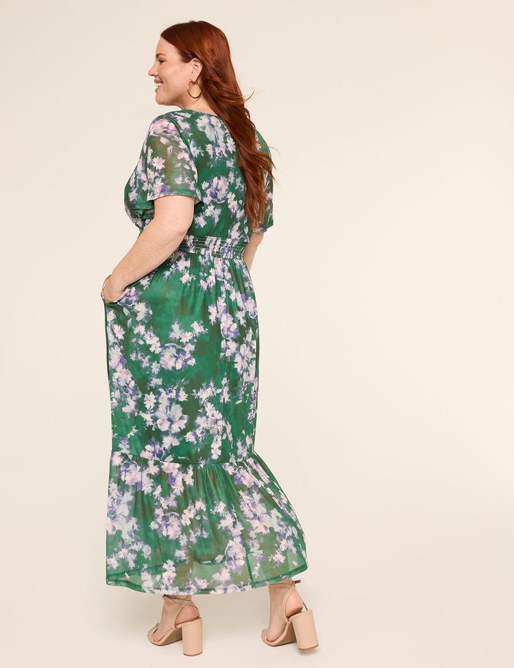 SHORT-SLEEVE V-NECK SMOCKED MAXI DRESS