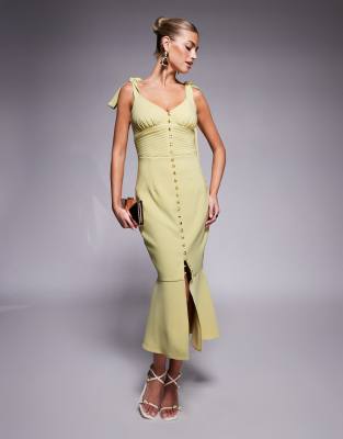 LAVISH ALICE TIE STRAP MICRO SHELL BUTTON MIDI DRESS IN LIME GREEN