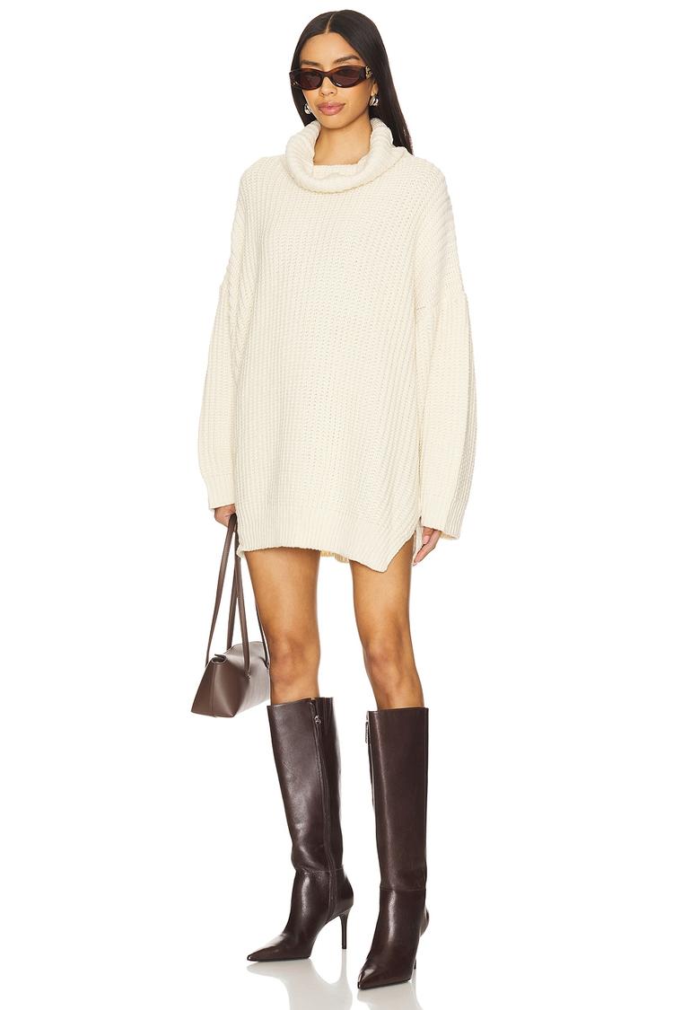 Soft cream hues and a heavyweight knit fabric define this loose-fit sweater dress featuring a cozy turtleneck and long regular sleeves. Its mini length and clean hemline create a relaxed yet stylish silhouette perfect for autumn and winter days. Ideal for casual outings, workwear, or weekend brunches, this pullover dress offers effortless comfort with a minimalist chic vibe.