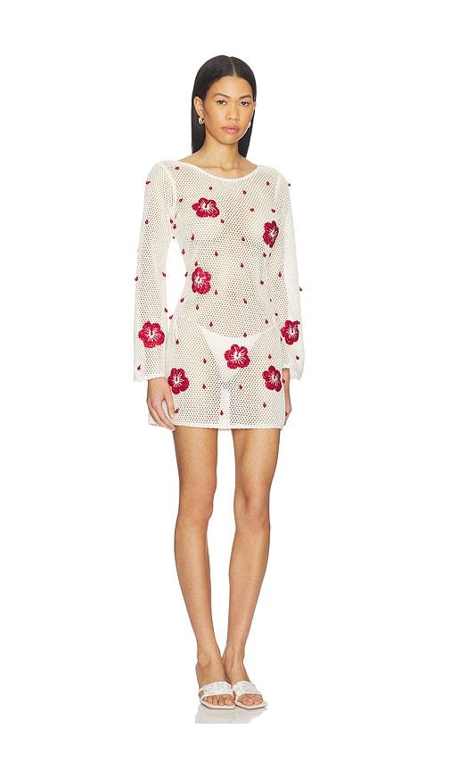 LESLIE AMON TREASURE HIBISCUS MINI DRESS IN WHITE.