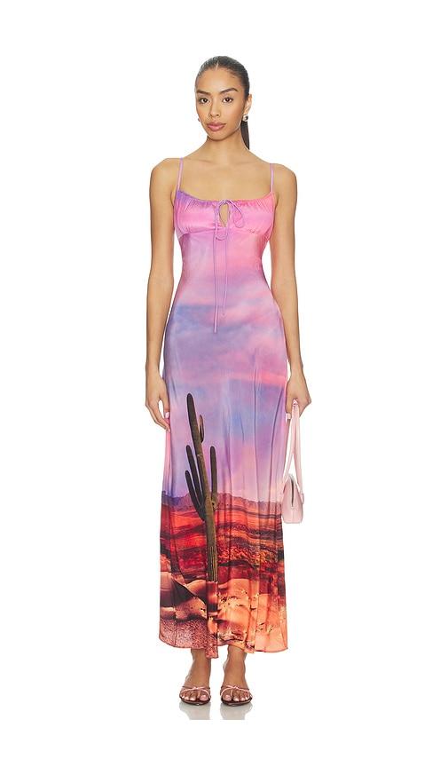 LESLIE AMON X REVOLVE TIMELESS PALM SPRING DRESS WITH HEAD SCARF IN PINK.