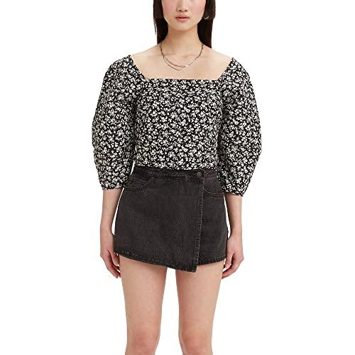 LEVI'S WOMEN'S LONG SLEEVE YVIE BLOUSE, (NEW) ODESSA FLORAL BLACK AGATE, LARGE