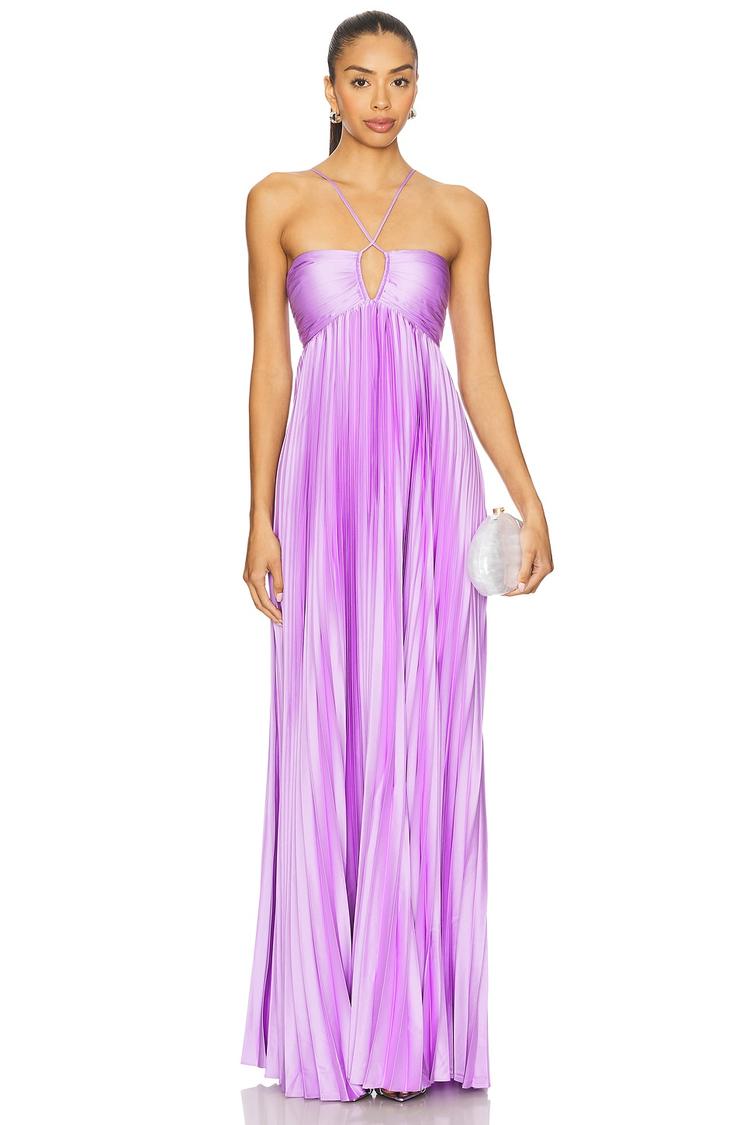 pleated satin maxi dress