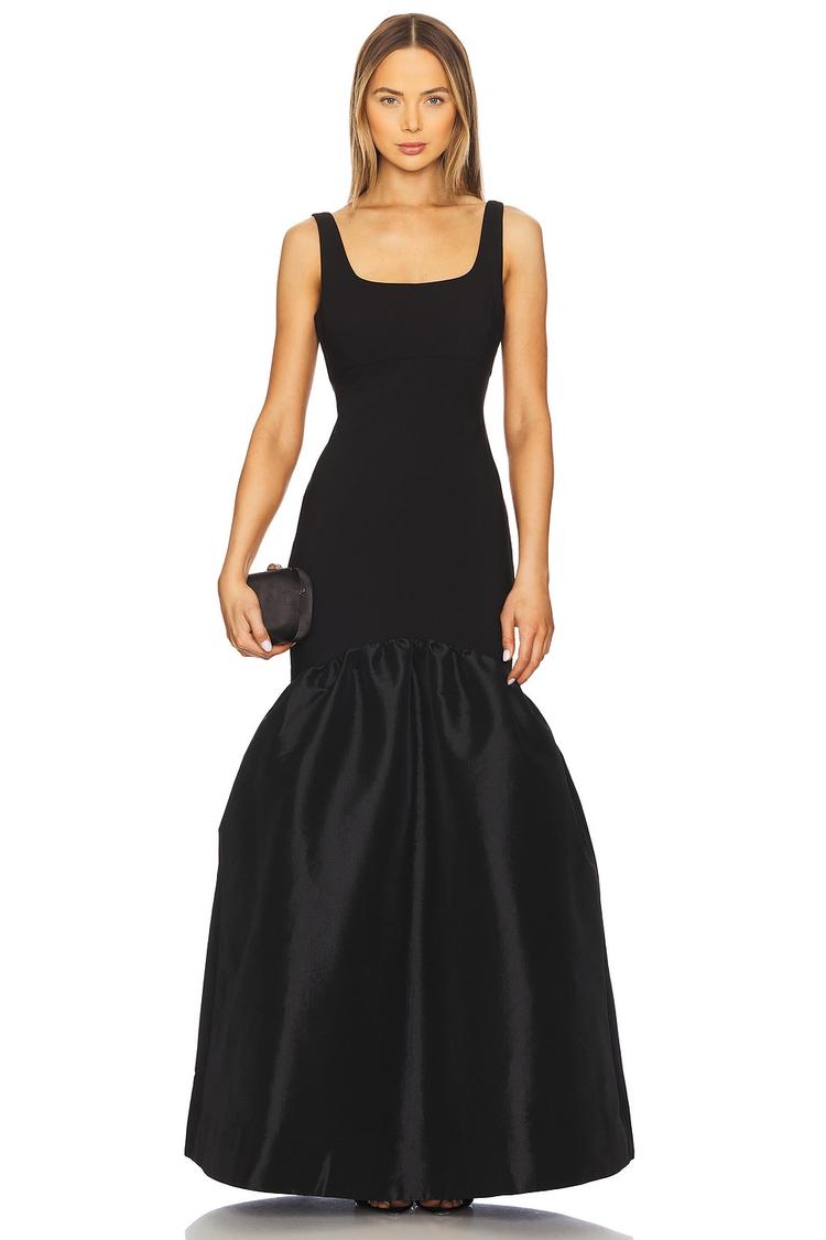 square neck fitted gown