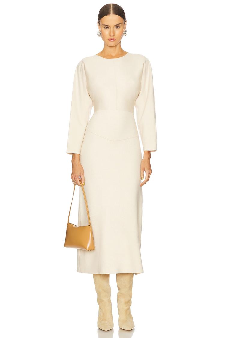 cream sweater midi dress