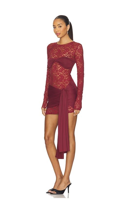 LIONESS MIDNIGHT MINI DRESS IN BURGUNDY.