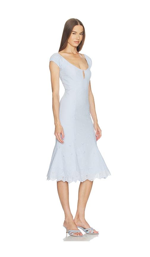 LOBA BONITA EYELET MIDI DRESS IN BABY BLUE.