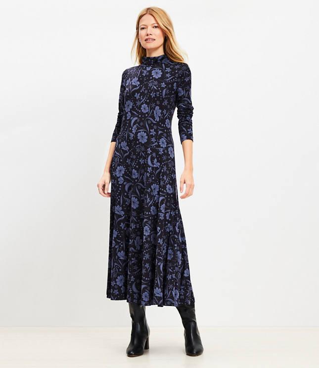 SNOWFLAKE BLOOM GODET TURTLENECK MAXI DRESS