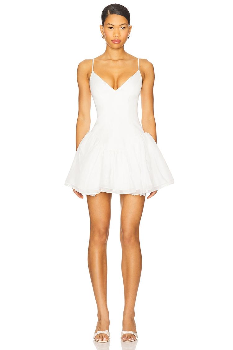 Soft sateen fabric and a fitted bodice with adjustable spaghetti straps create an elegant silhouette in this Brielle mini dress. Featuring a playful ruffled skirt hem, its white hue enhances the classic A-line shape, perfect for spring and summer events. The invisible back zipper ensures a sleek finish, while the fully lined construction adds comfort. Ideal for brunch, date nights, or cocktail parties, this dress blends timeless style with flirty detailing for versatile, chic wear.