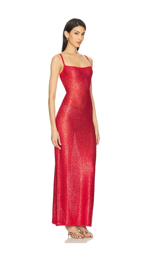LOVERS AND FRIENDS BRIA SEQUIN MAXI DRESS IN RED.
