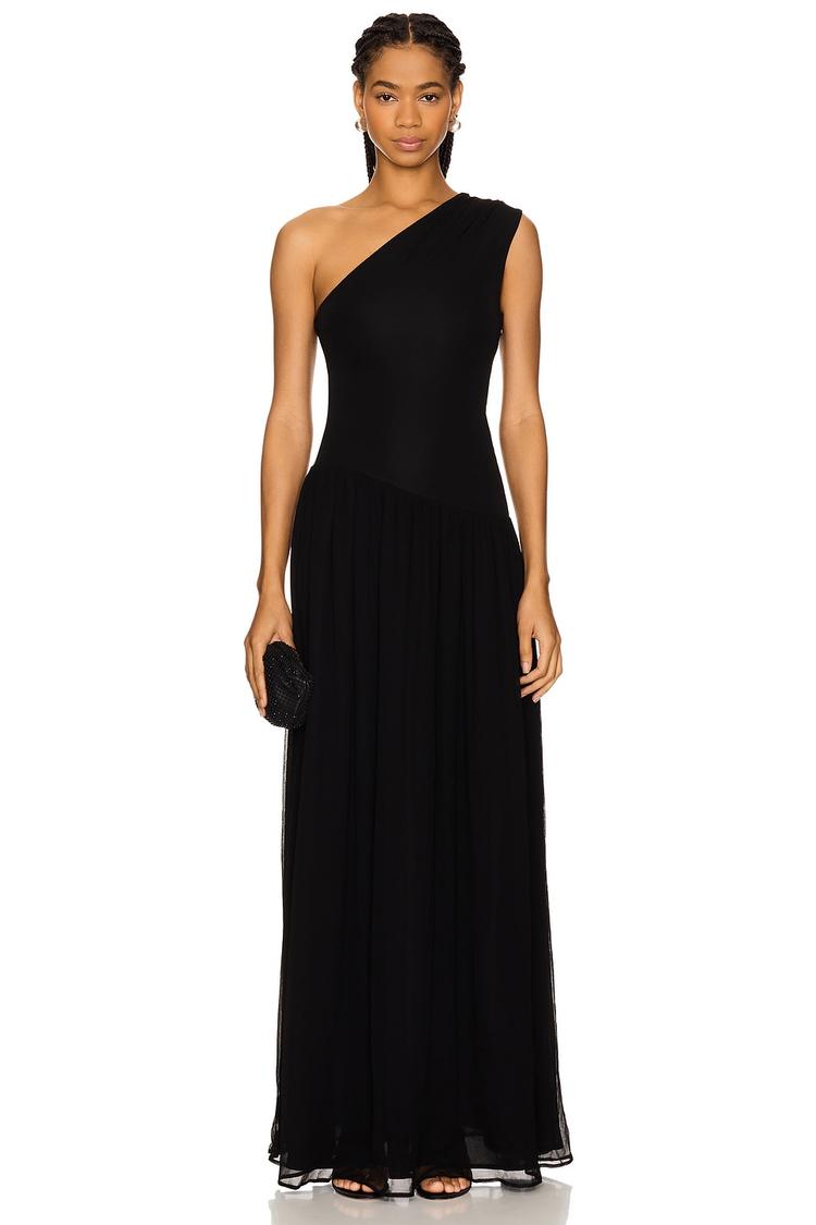 black one-shoulder gown