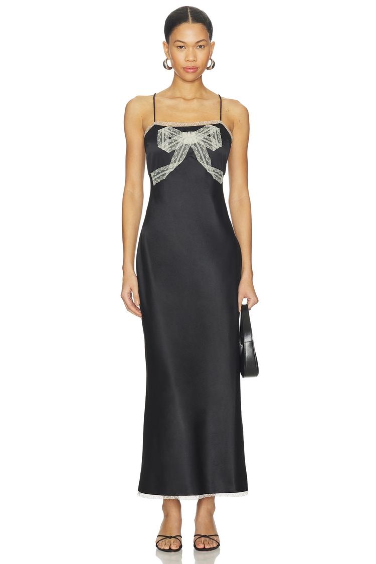 Lightweight satin-finish polyester crepe creates a sleek, figure-skimming slip dress featuring a straight neckline and delicate spaghetti straps. The midi length and slim fit offer elegant sophistication, while an off-white lace bow detail at the front adds a romantic touch. With a hidden side zipper and hook closure, this minimalist dress is perfect for date nights, cocktail parties, and semi-formal occasions during spring and summer. Its satin sheen elevates the understated design, making it a versatile staple for refined evening events.